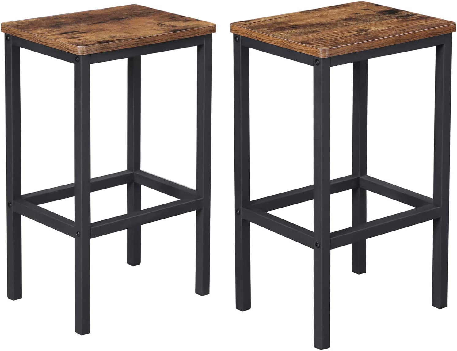 Bar Stools, Set of 2 Bar Chairs, Kitchen Breakfast Bar Stools with Footrest, Rustic Brown and Black